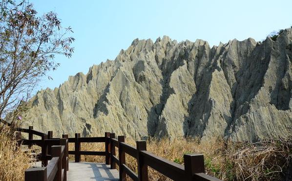 位于高雄弥陀区恶地地形之一的漯底山,有着像剑龙背脊的特殊山棱线景观也让不少游客前来参观,泥质裸露的岩层也增加了像峡谷一样的荒凉感,站在山脊中间拍照真的超美又壮观!