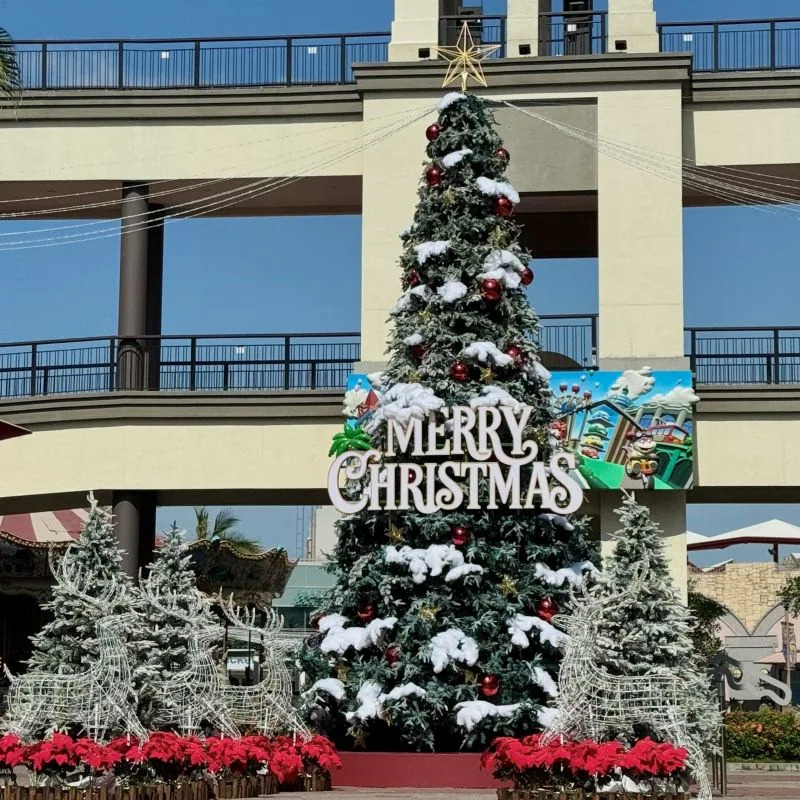 日夜都好拍的6大打卡亮点包含位于户外购物街区的「雪境耶诞树」,现场可赏巨型圣诞树闪耀,14:00至21:00每60分钟展演雪花秀;位于中央广场的「童话北极村」,于13:30至20:30每60分钟演奏浪漫乐章。