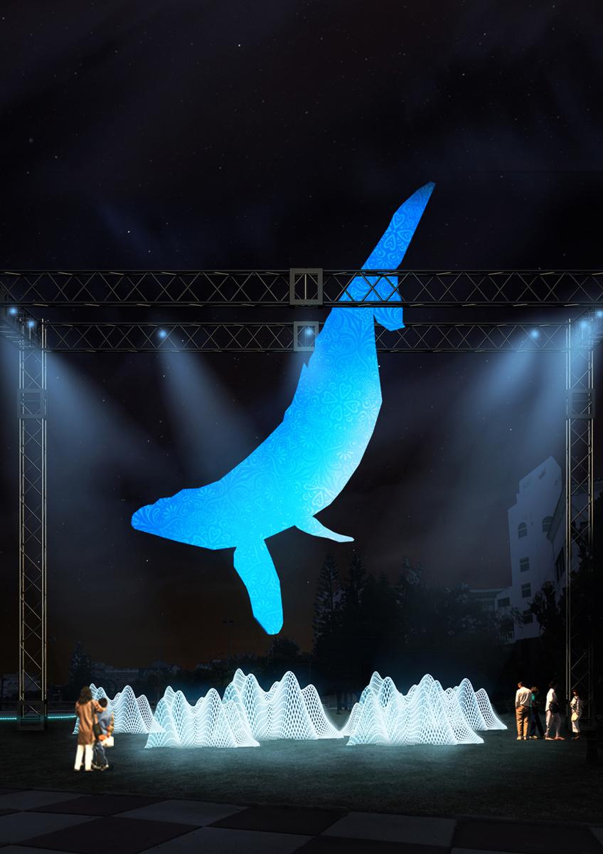 本次灯光节最大亮点非这只蓝鲸莫属啦!由澎管处监制15公尺长的主灯「鲸动海湾」,湛蓝的巨型鲸鱼在空中悠游,彷佛观者也置身在深海之中,感觉这里就会成为IG打卡的最大亮点,这只大鲸鱼将于8/17开幕当天正式启动,配合灯光3D秀,侬编已经等不及想看它的本尊了~