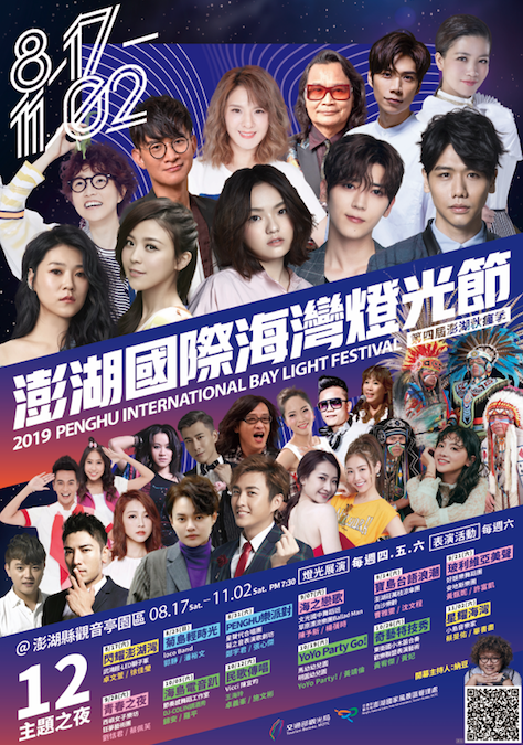 除此之外,活动期间每周六晚上7点至9点举办灯光节主题之夜,邀请老中青三代的超大卡司LaLa徐佳莹、卓文萱、Bii毕书尽、黄妃、沈文程、曹雅雯、许富凯、施文彬等超大咖卡司,就是要让澎湖秋季夜晚星光闪耀。