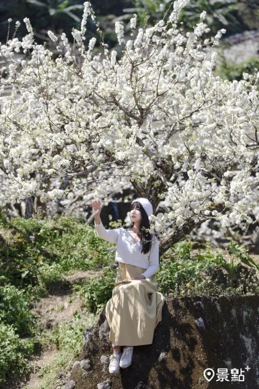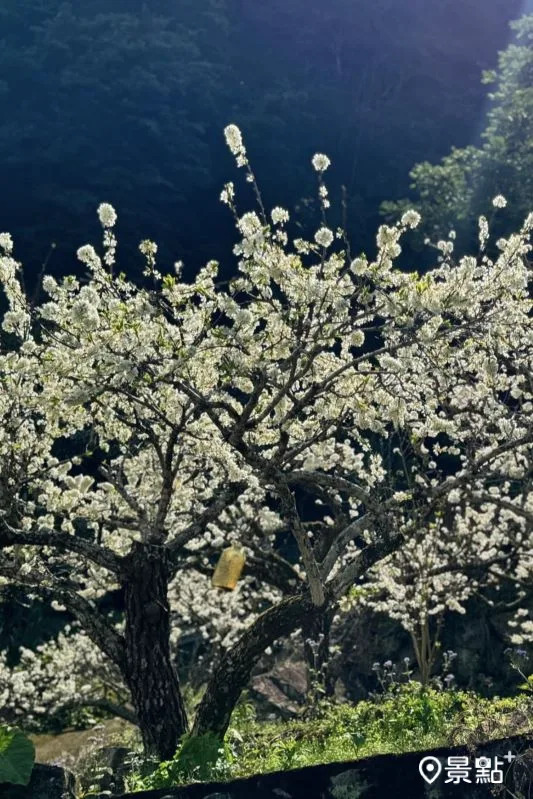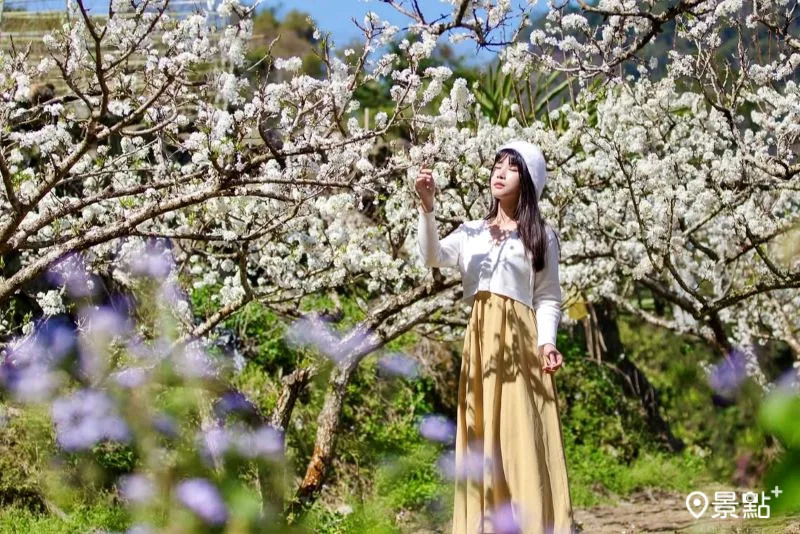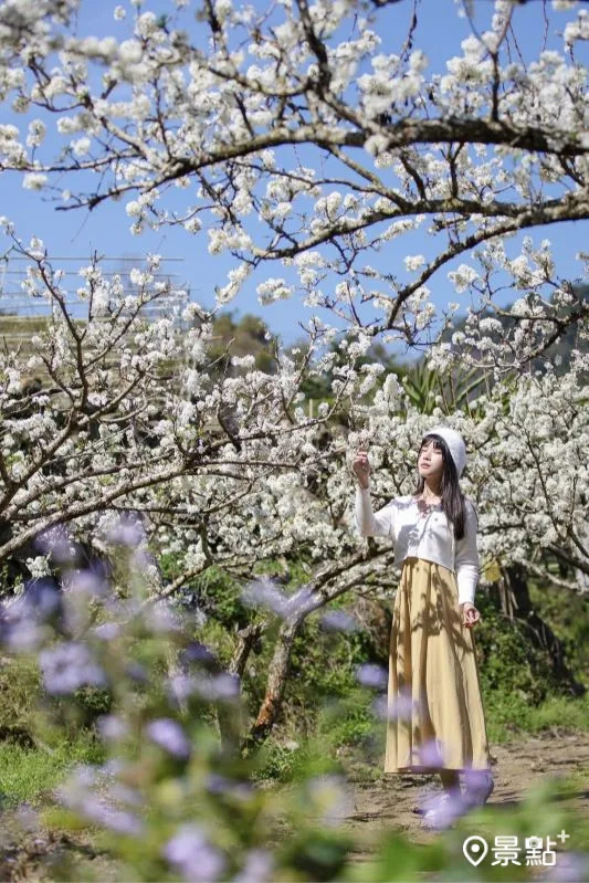 李花同框藿香蓟双色花海秘境这里拍!苗栗县泰安乡有一处李花林,现场不仅能赏雪白花景,还能将紫花藿香蓟一同入镜,快将本篇取景角度及美拍情报笔记起来,把这里加入花海待访清单!